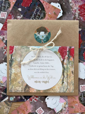 Doppelkarte mit weissem Briefumschlag, liebevoll im mein-engel-look eingepackt.