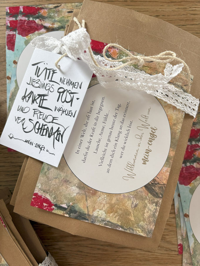 Damit die Karten geschützt sind und das Gesamtbild einheitlich bleibt - wir schenken die Karten verkaufsfertig im liebevollen mein-engel-look!