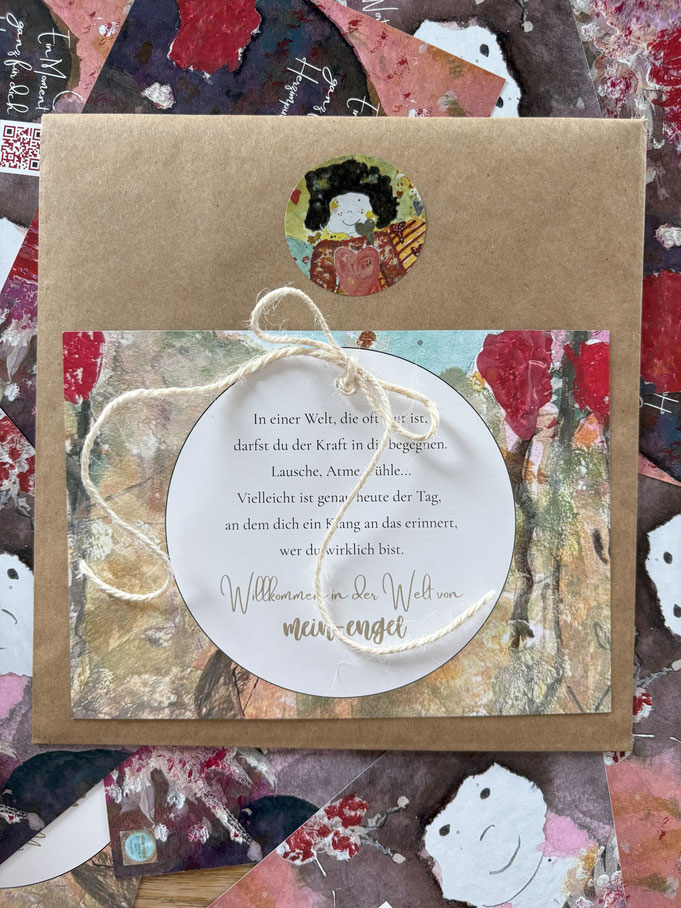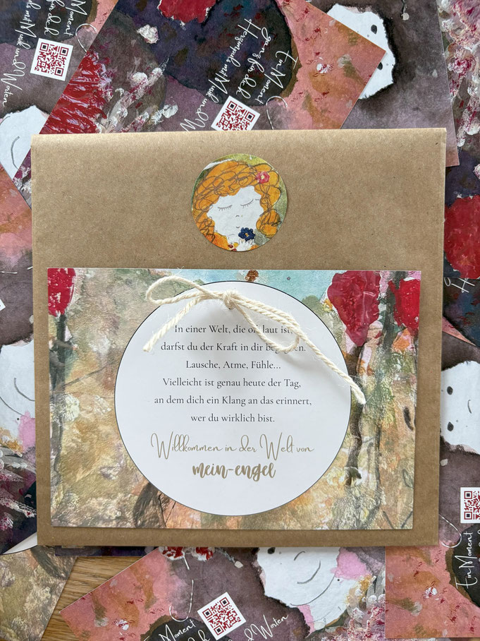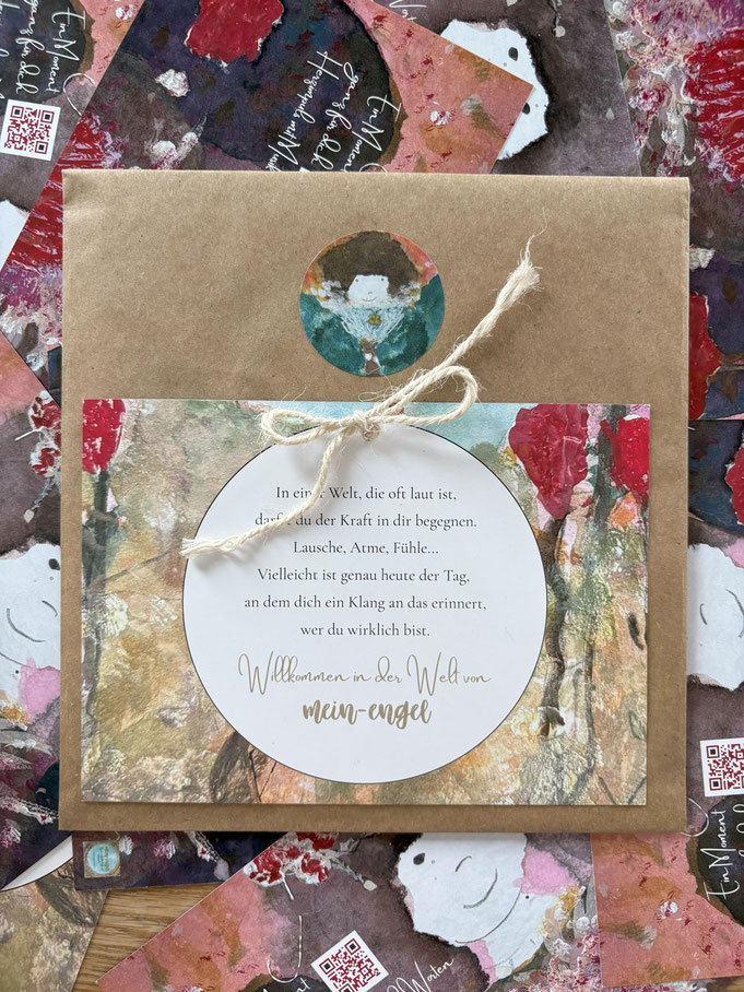 Die Kunstkarten erreichen dich liebevoll eingepackt im mein-engel-look.